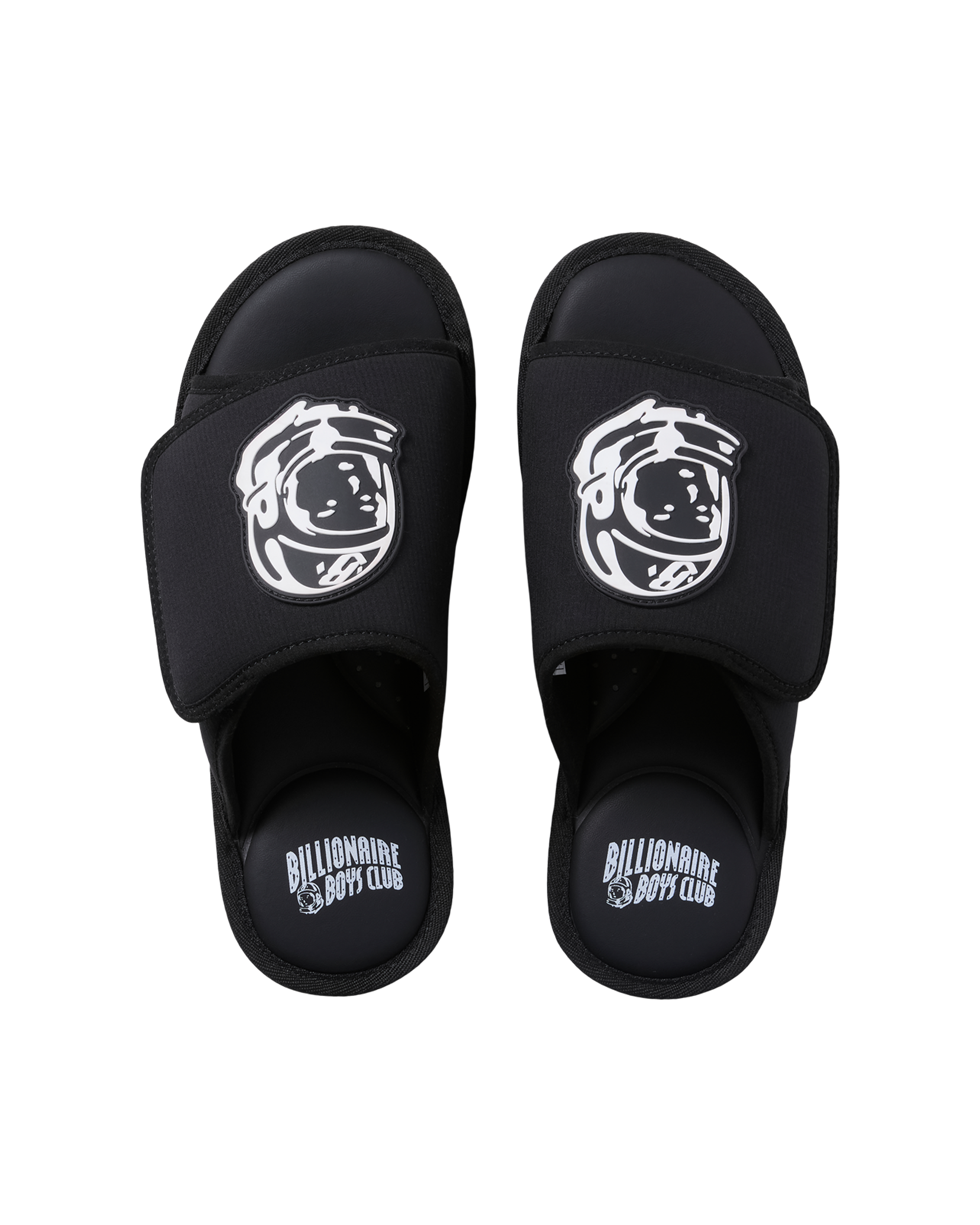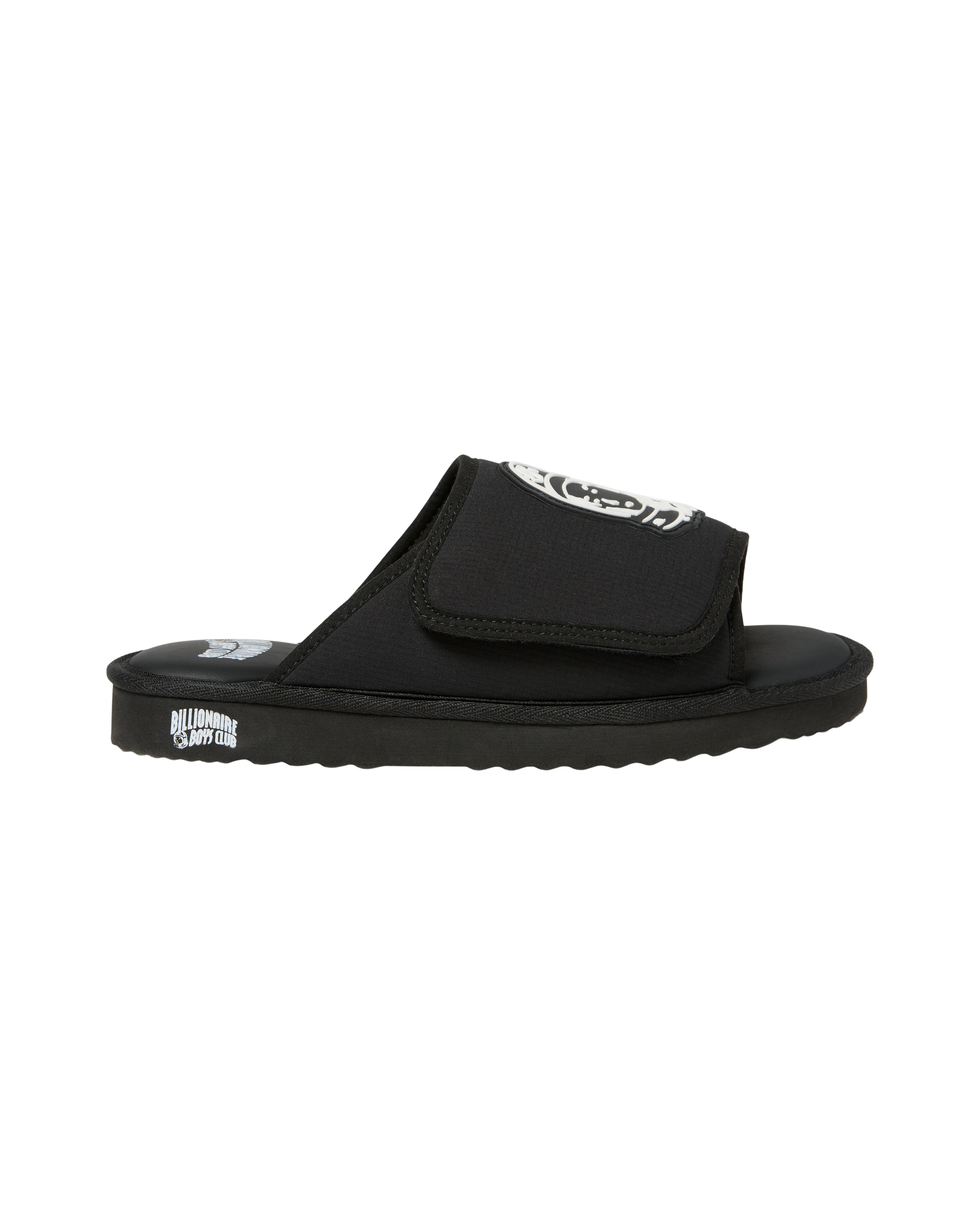 Slides featuring a velcro strap. along with the Helmet Head on top and the Classic Curve logo at the heel.