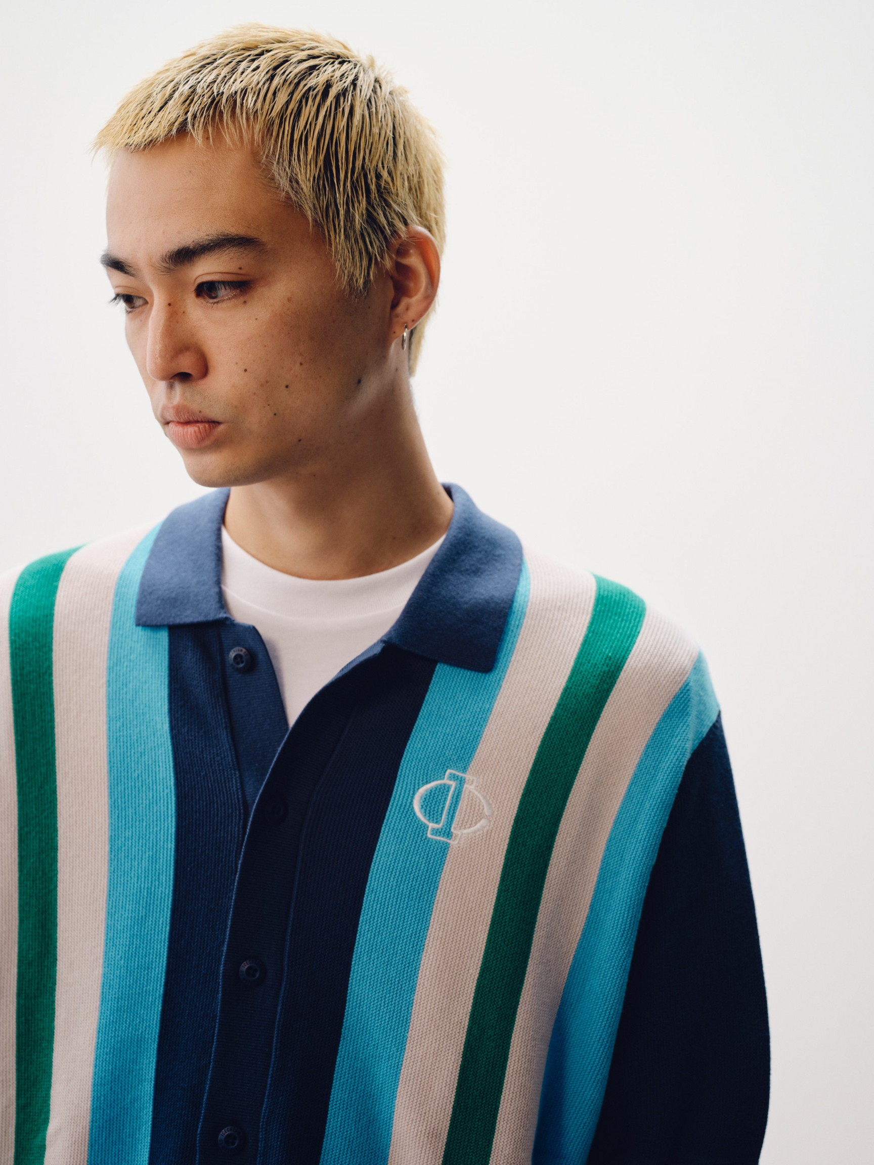The Collared Knitted Polo Shirt features the embroidered IC signet at chest with contrasting stripes and branded buttons.