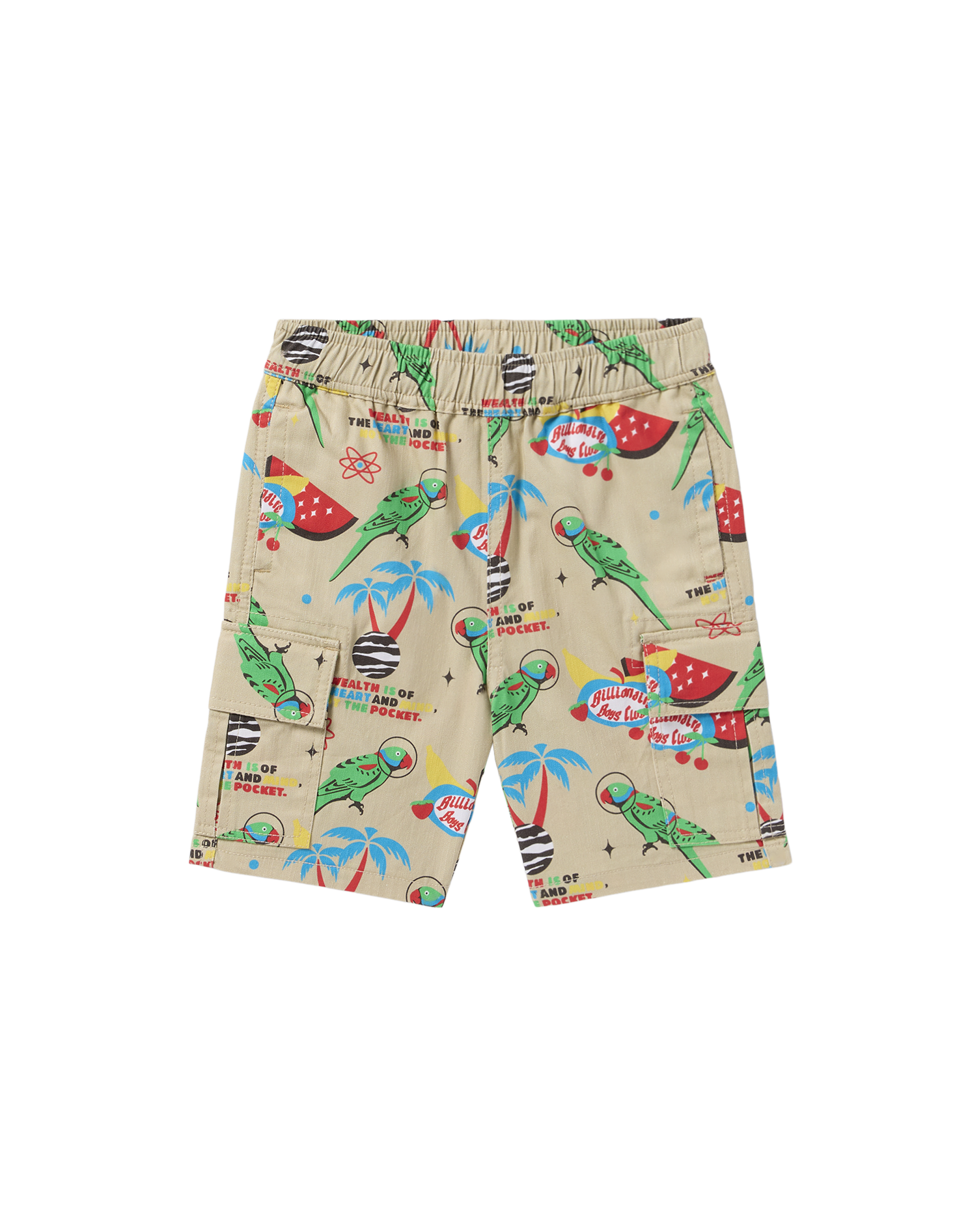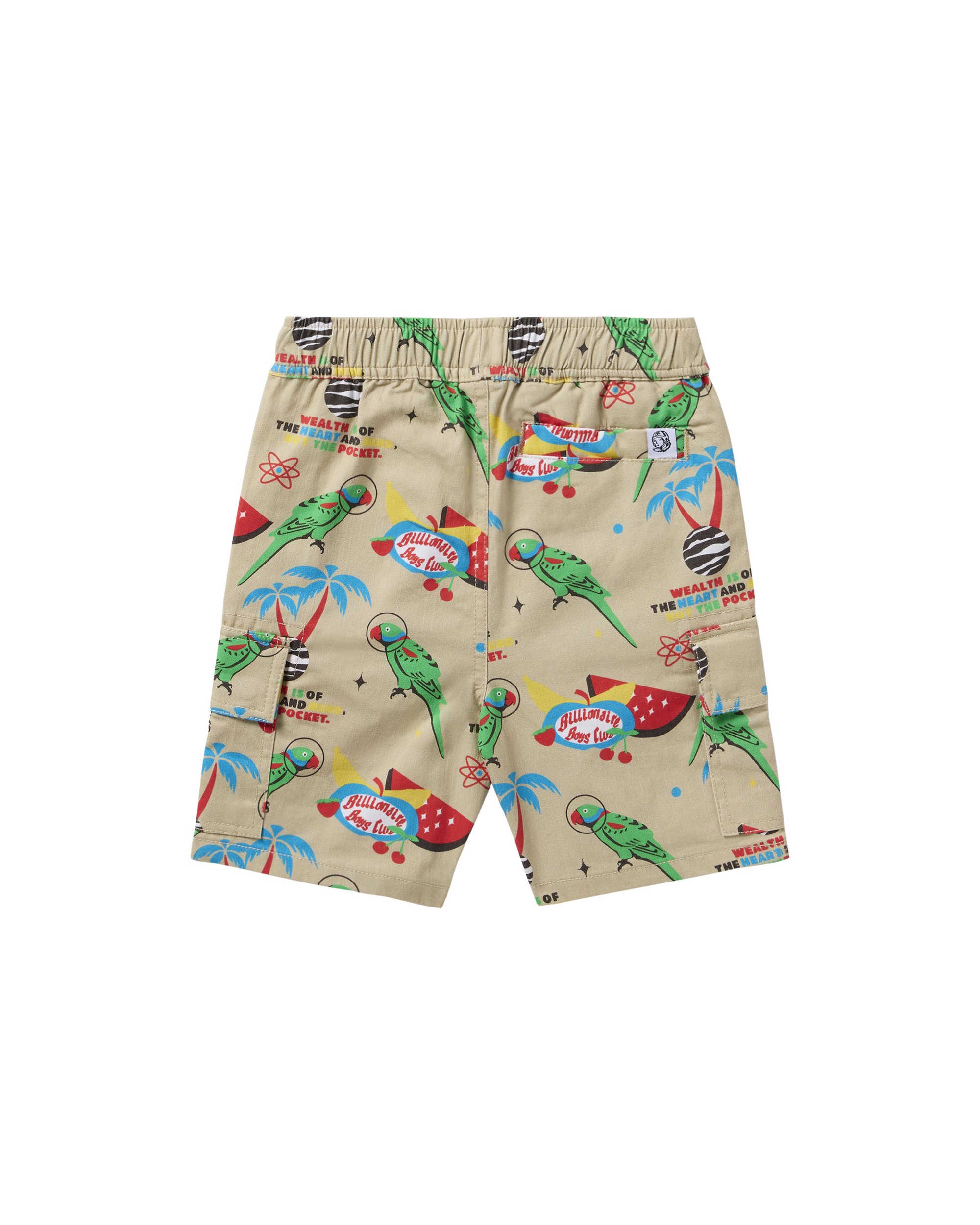 Kids Cargo Shorts featuring an adjustable waist along with an all over tropical print.