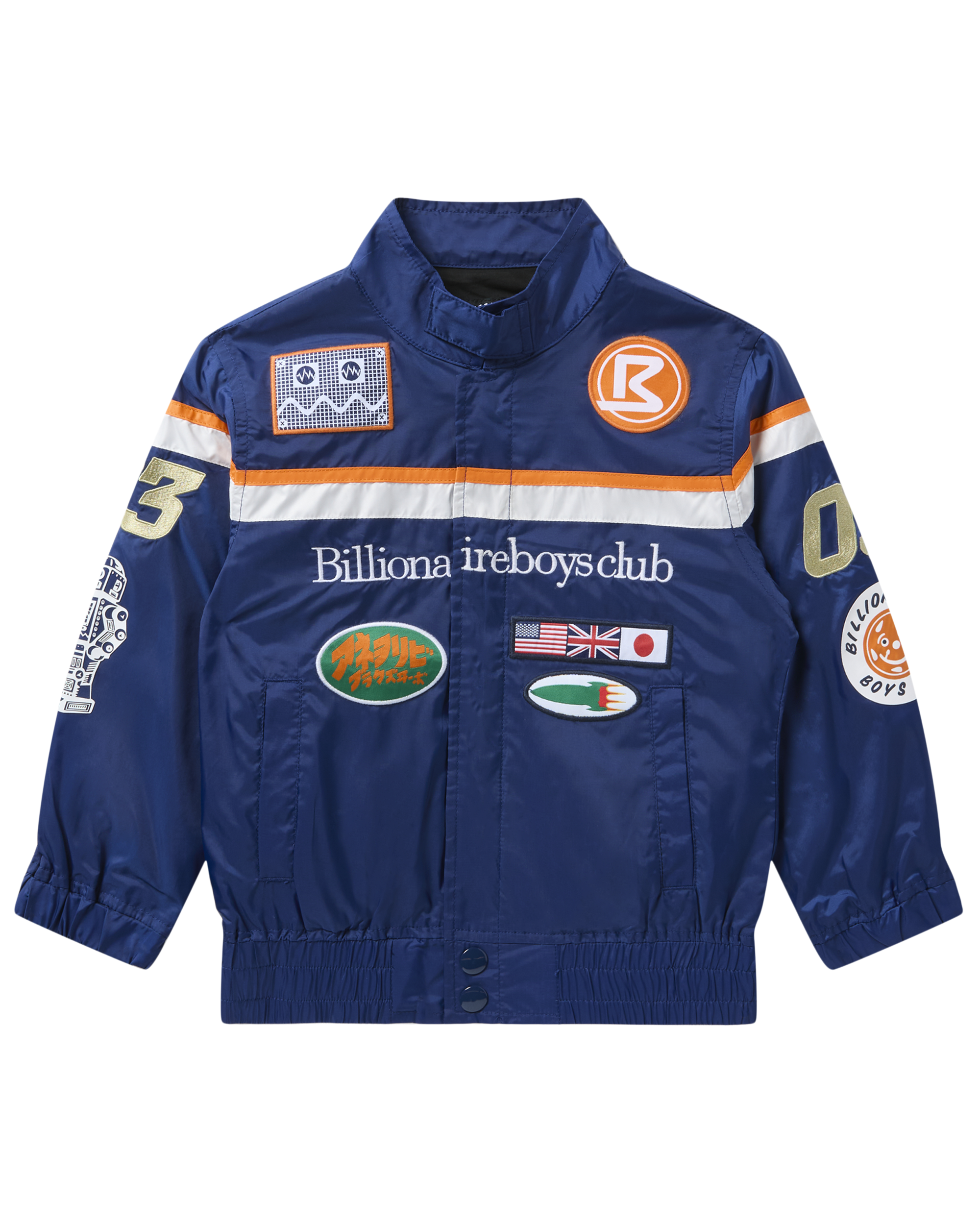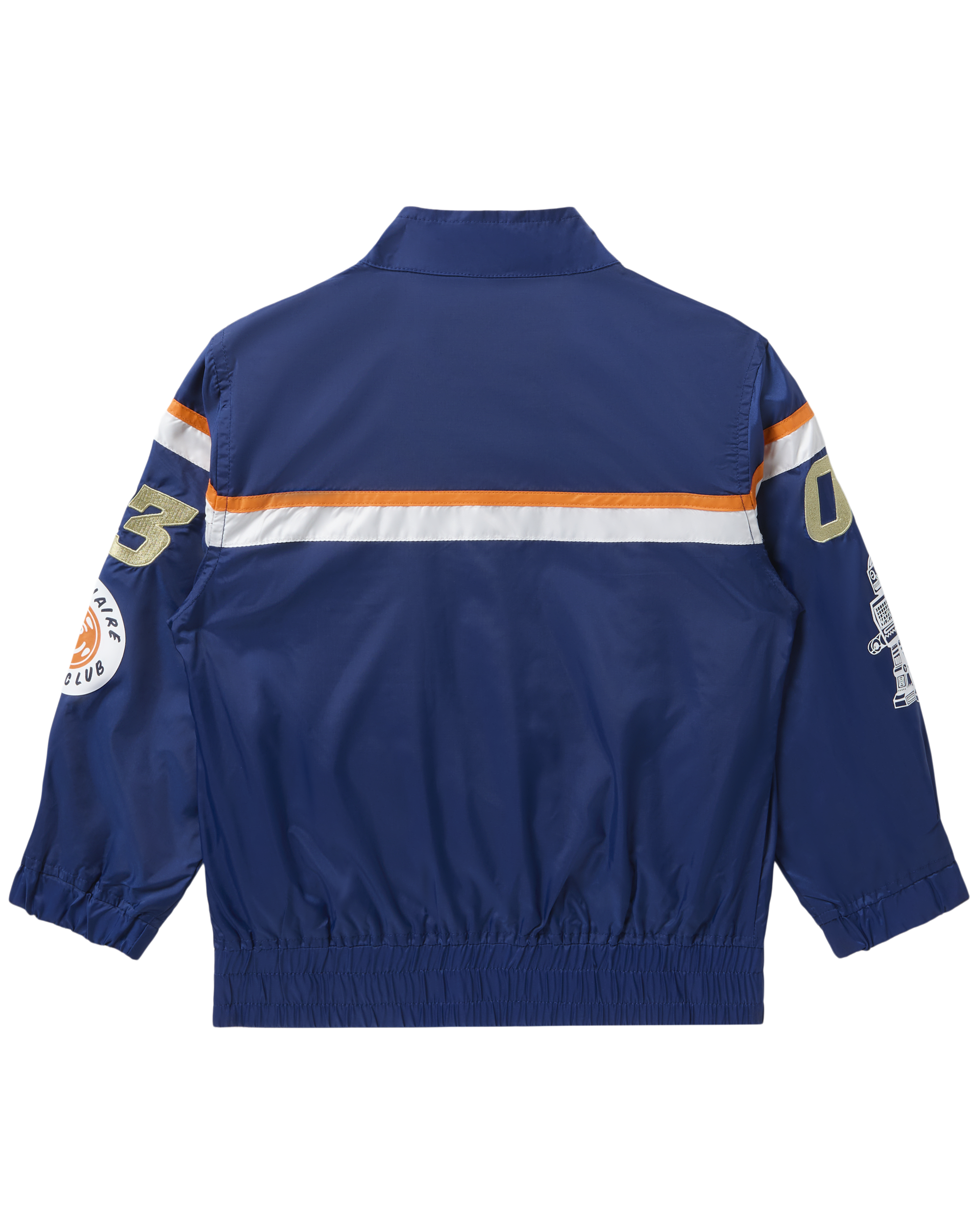 The Nova 03 Racing Jacket features a Mock collar. along with color block stripes. and woven patches on the front.