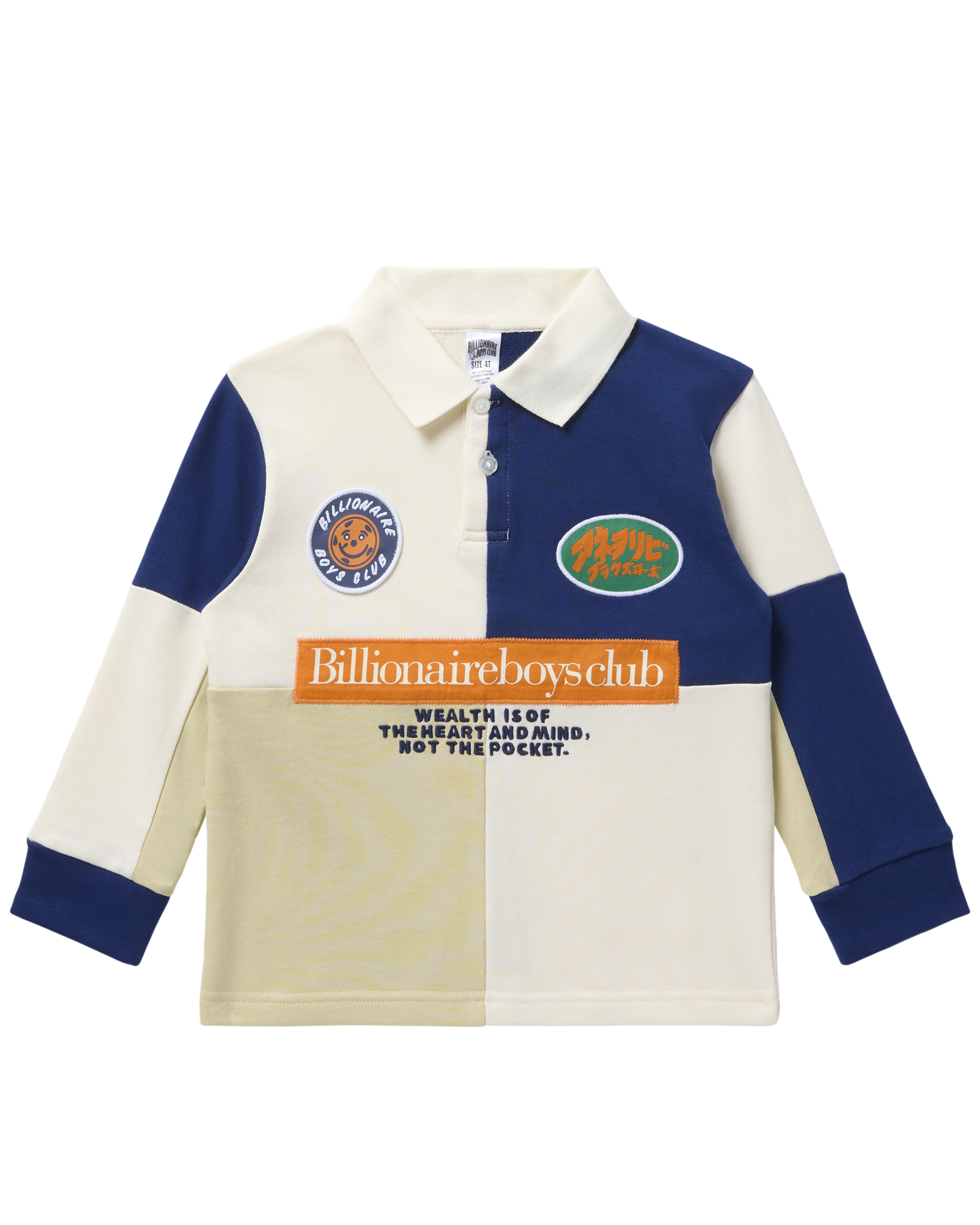 The Pixel Long-Sleeve Polo has a color block design and displays Billionaire Boys Club patches on the front.
