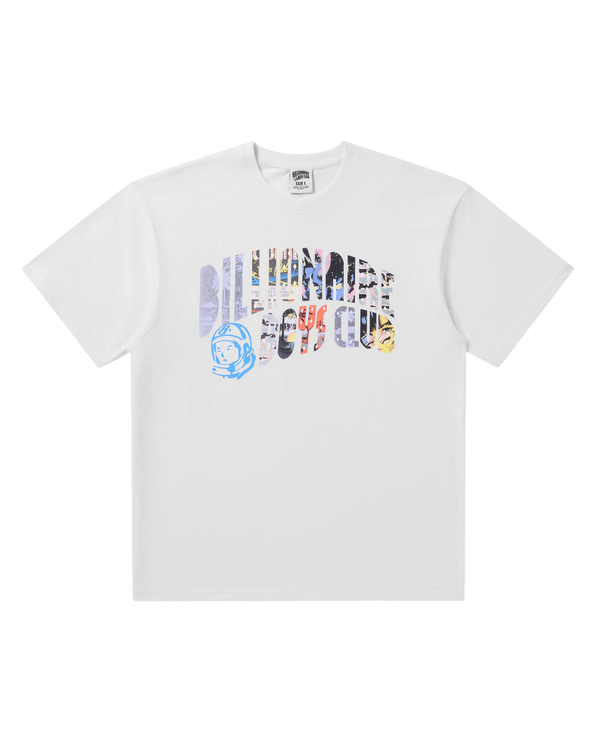 This tee showcases the Classic Curve logo accompanied by a comic-inspired graphic on the front. with the Astronaut logo positioned at the back neck.