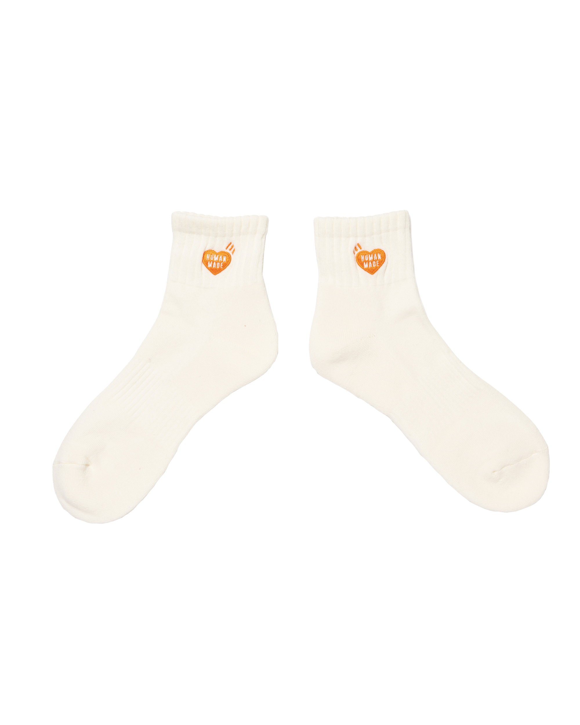 These Short Pile Socks offer thick cushioning for added comfort. The ribbed ankle helps keep them in place. and they are decorated with the Heart logo embroidery.