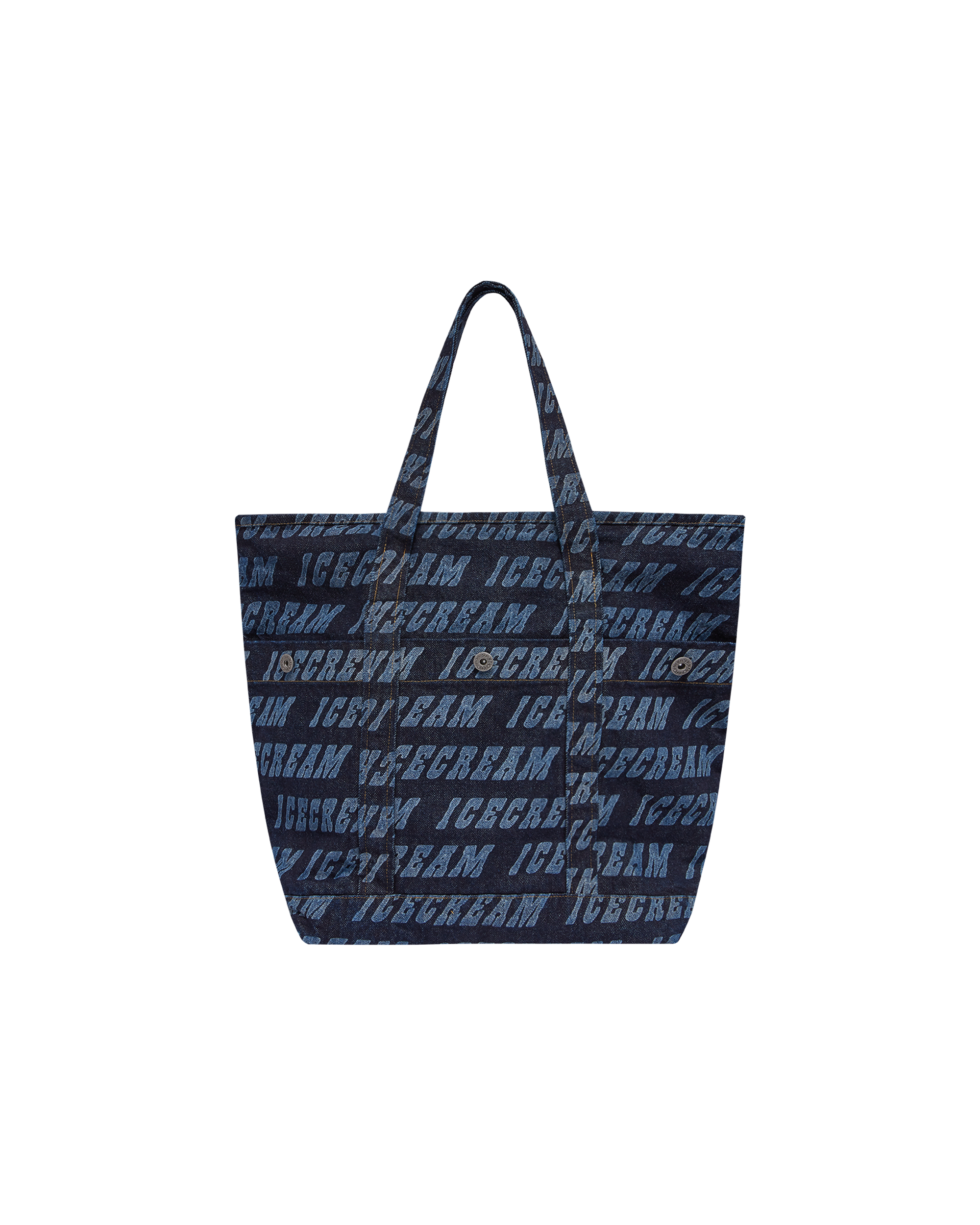 The Repeat Logo Denim Tote Bag presents an all-over repeated ICECREAM logo and branded tag to the front.