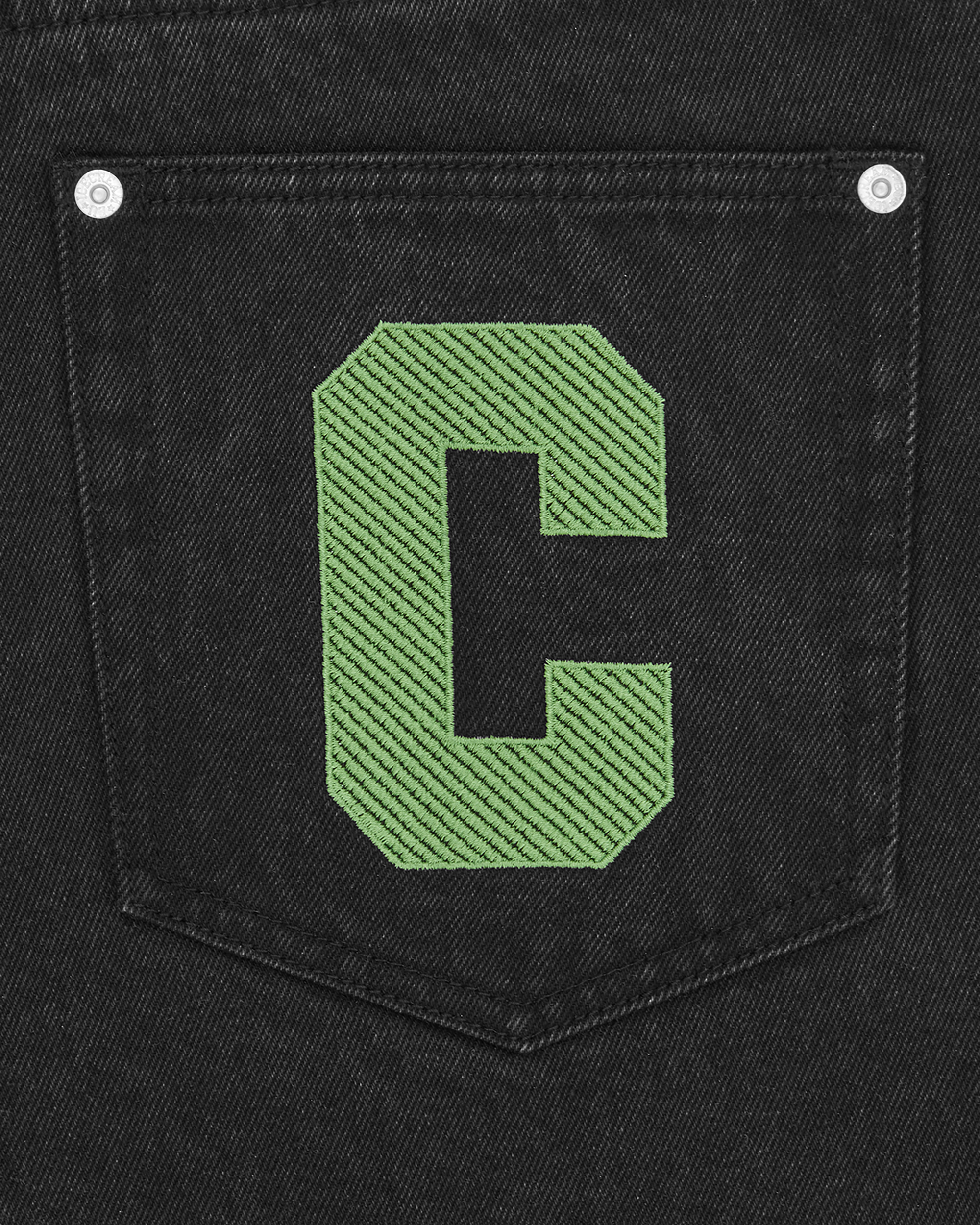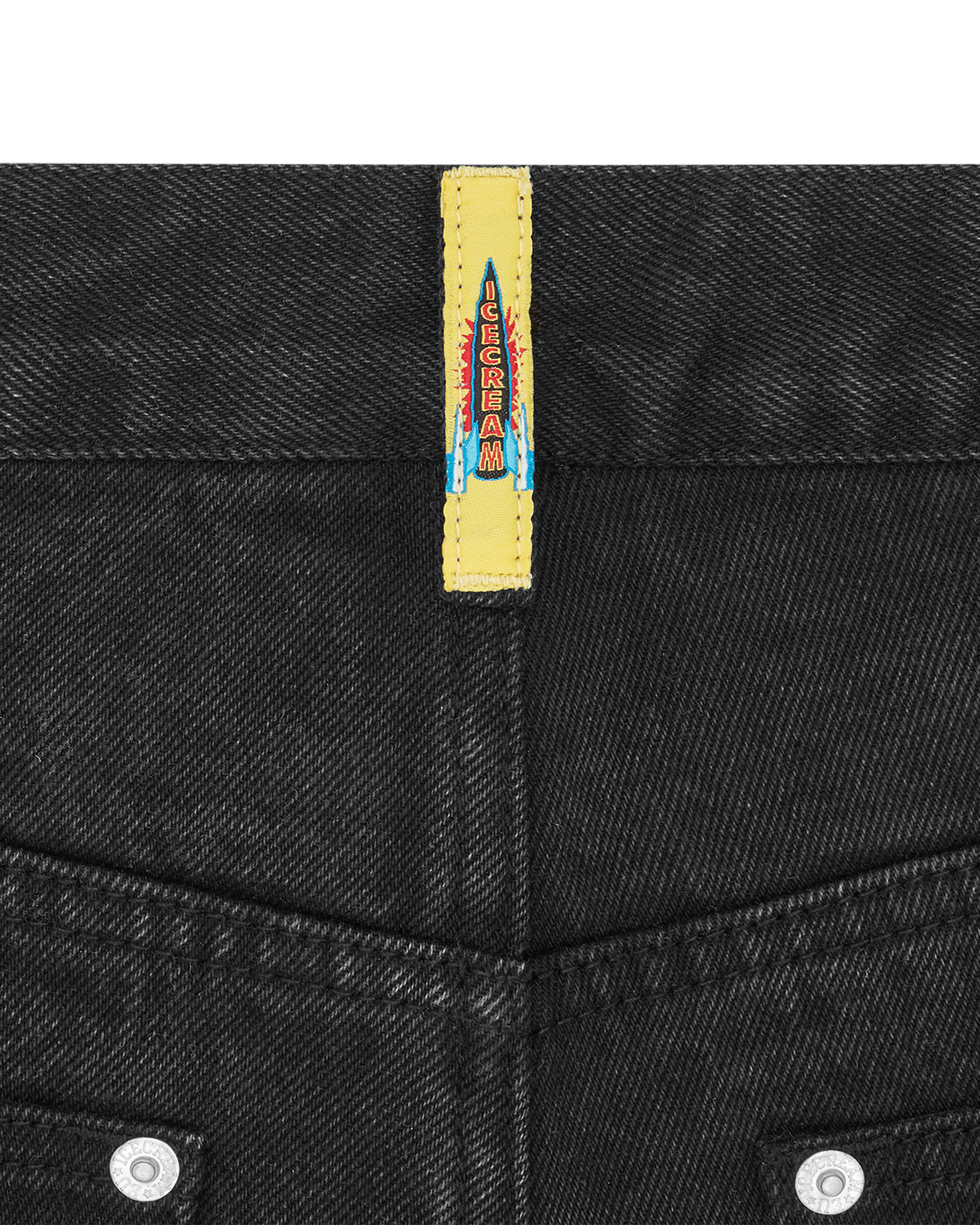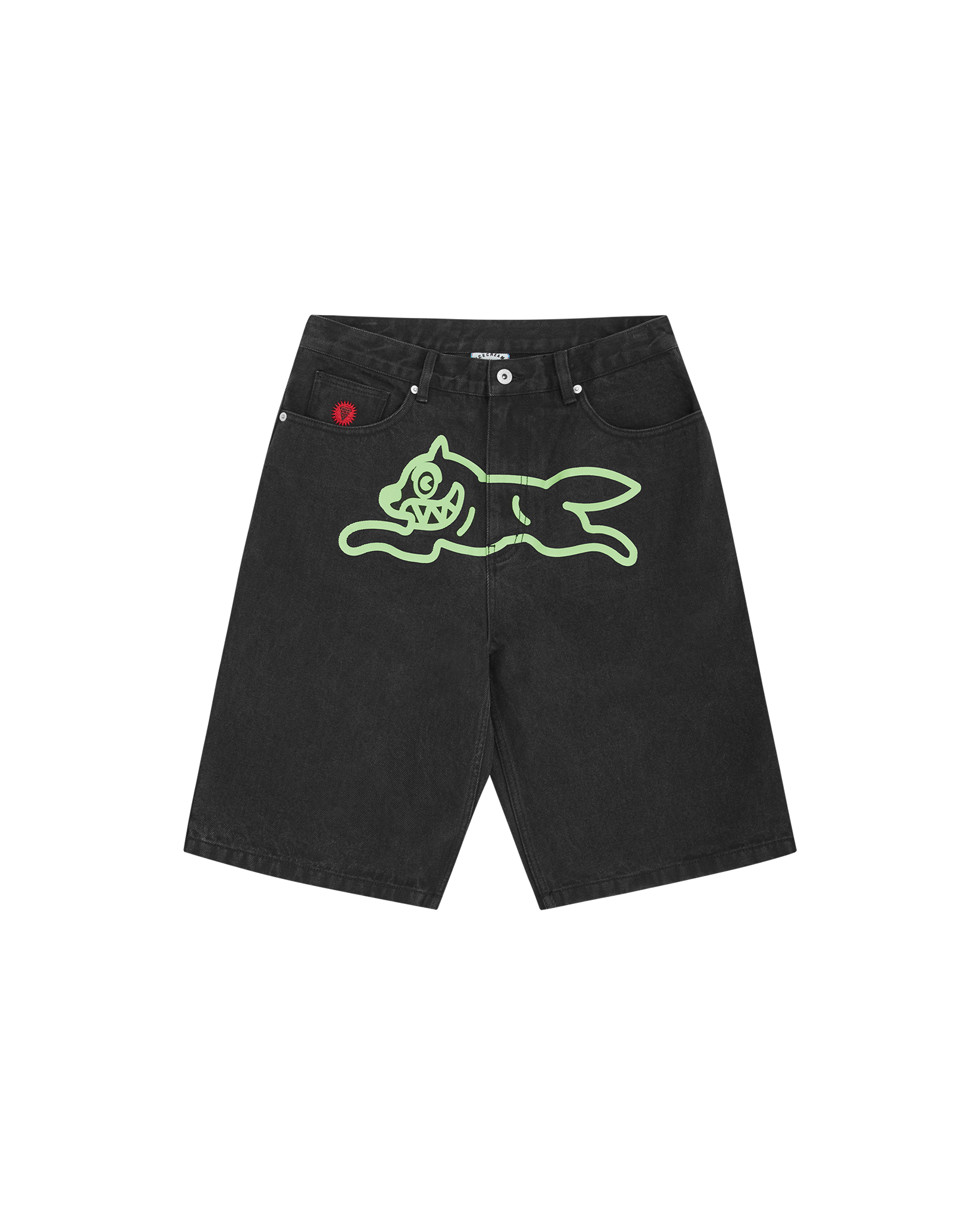 These Running Dog Denim Shorts feature the iconic screen-printed Running Dog graphic on the front.