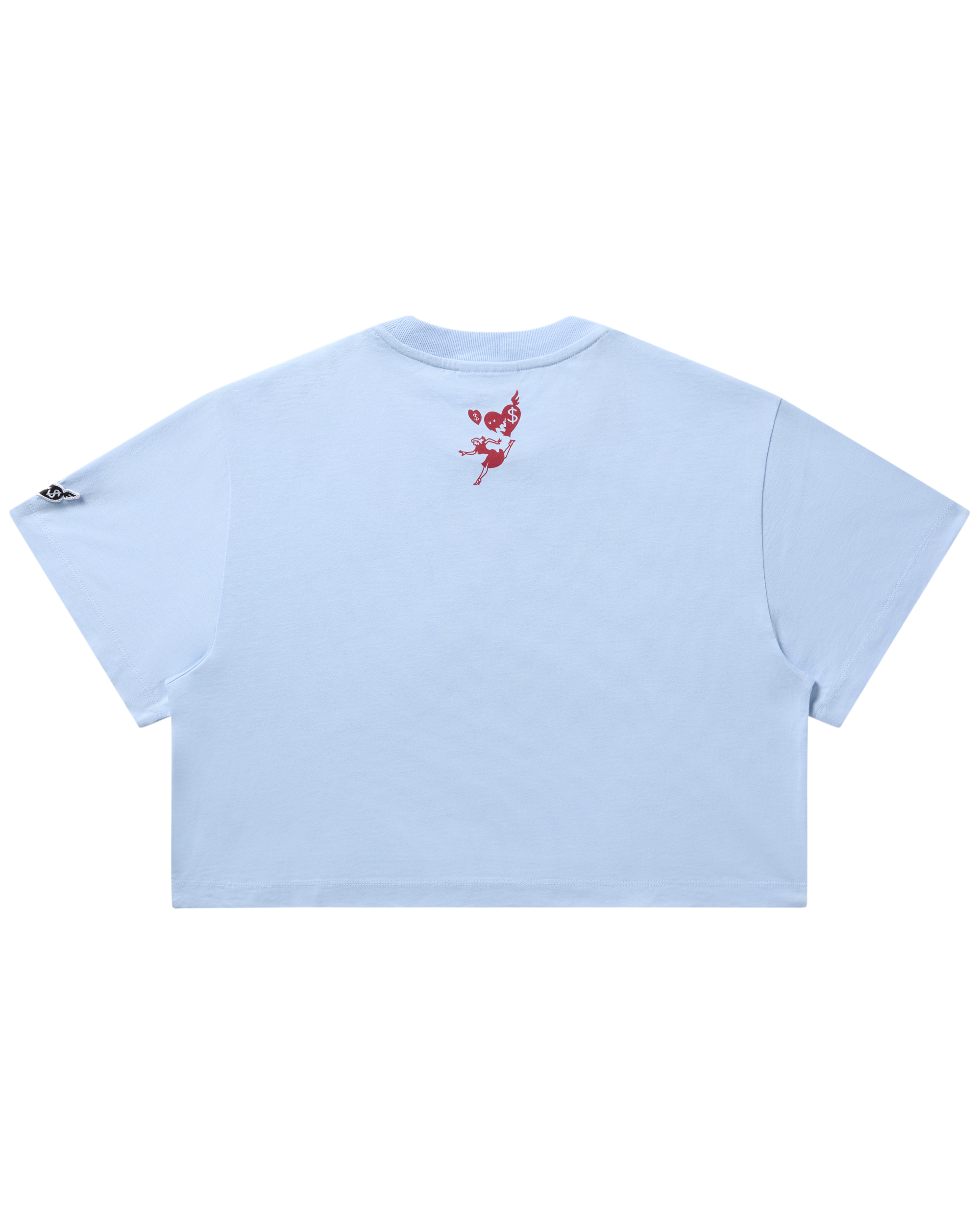 The Womens Script Heart Cropped Tee shows the Script logo with a heart on the front and the BGC logo at the back of the neck.