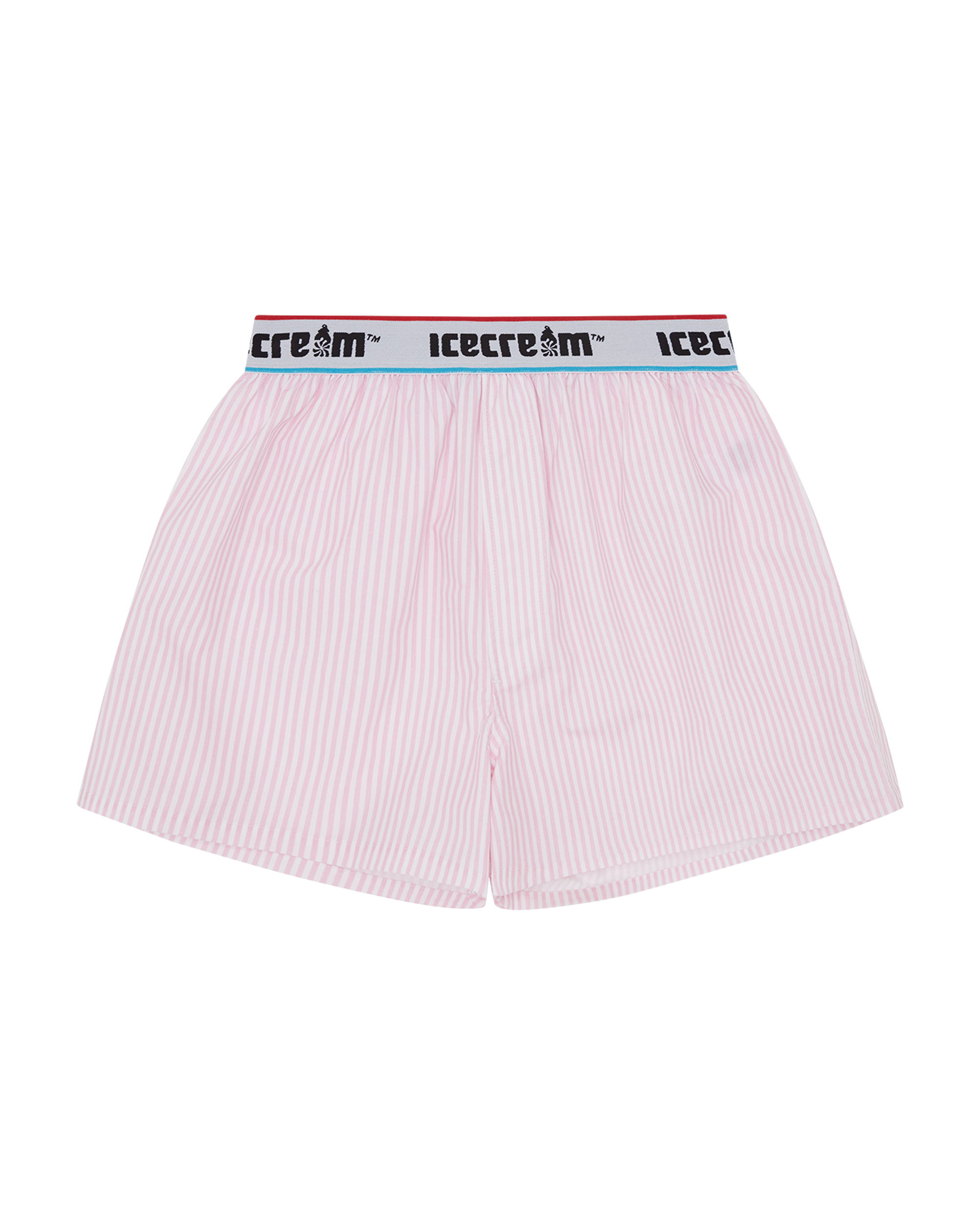 100% Cotton Soft Serve Boxer Short with an all-over pink stripe pattern and presenting the ICECREAM branded waistband.