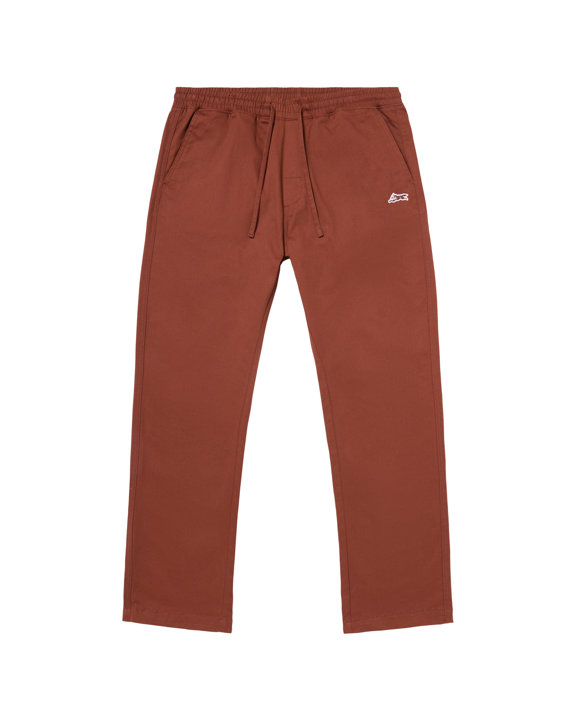 Pants featuring an adjustable waistband and Running Dog woven label.